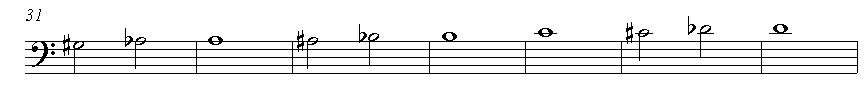 | F# - G-flat G G# - A-flat A A# - B-flat B C |